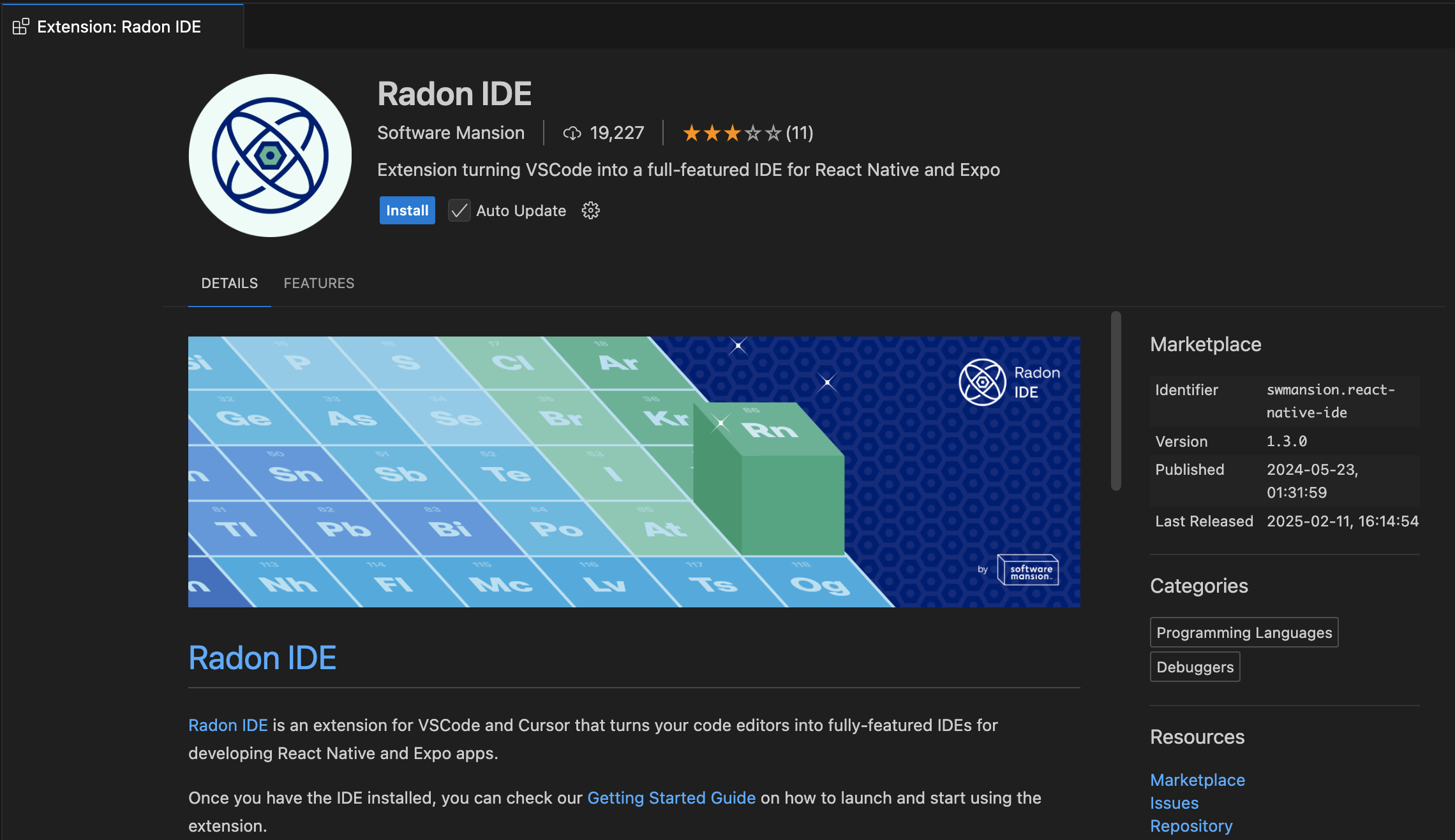 If you are using Cursor you may see an outdated version in the marketplace when installing Radon IDE. This seems to be an issue with Cursor where the extension updates aren't getting propagated for up to two days after the update is published. If you know there's a newer version that you want to use (you can check our releases page on GitHub), you can run "Extensions: Check for Extension Updates" command from the cmd+shift+p menu which should update Radon IDE to the latest version despite it not being listed in marketplace.